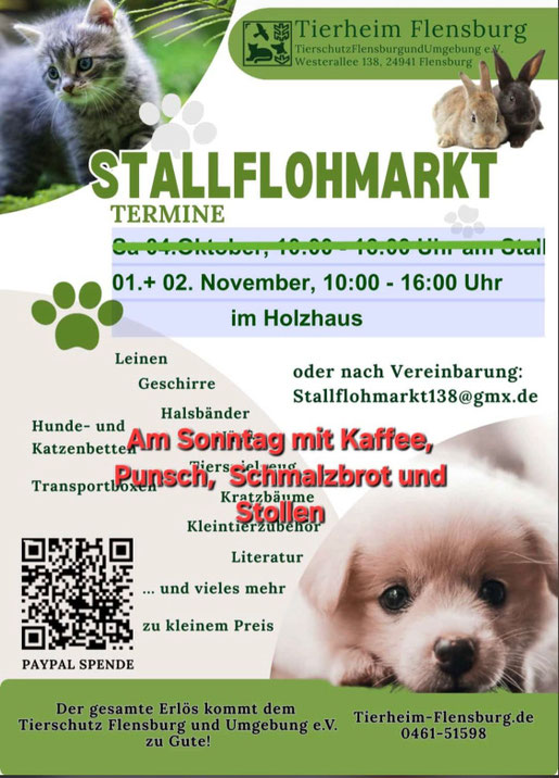 Der gesamte Erlös kommt wie immer dem Tierschutz Flensburg und Umgebung e.V. zugute – also vorbeischauen, stöbern, genießen und Gutes tun!