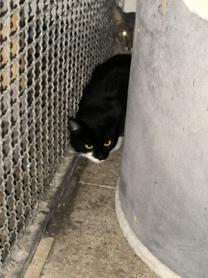 Wie auf dem Foto unschwer zu erkennen ist, ist Fux eine sehr scheue und wilde Katze, die lieber flüchtet, als sich anfassen zu lassen.