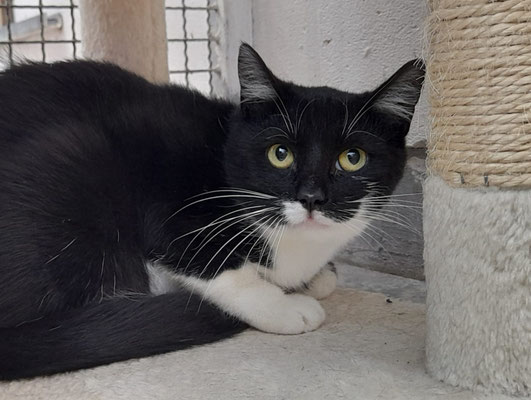 Besonderheiten: Noch scheu, braucht Zeit und Geduld; Freigang erforderlich; würde gerne mit Knolle ausziehen